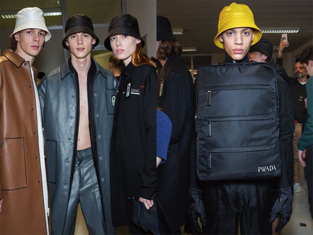 在Prada的秀场上,带有工业感和实用性的尼龙优雅地被再次应用到服装上,这次秀在米兰东南郊区的“Prada仓库”旁边举行,更像是在一所物流中心举行。
