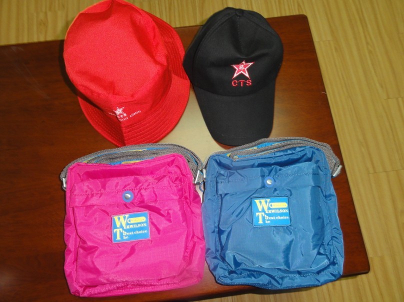 这是我昨天刚刚看到的、为这次欧洲行专做的“护照包”、旅游帽、队旗——