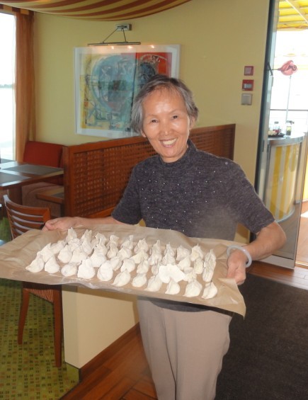 豪华游轮上每天每顿都有丰盛的菜肴,但我们每天都能喝到大米粥,竟然还能包饺子!