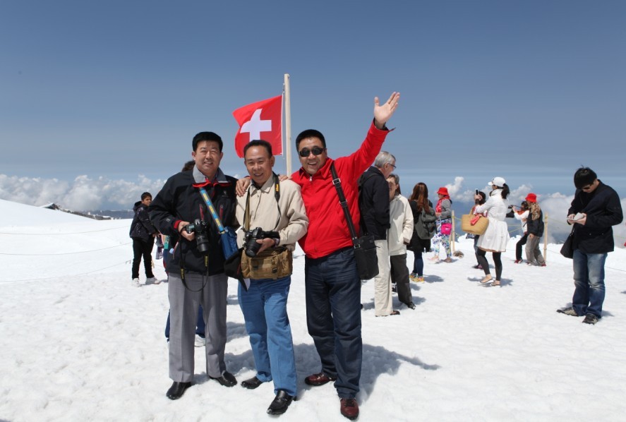 在少女峰上(阿尔卑斯雪山),在零下的温度,这位老干部突然裸露上身,他突然想融入自然?他突然想恢复童真?