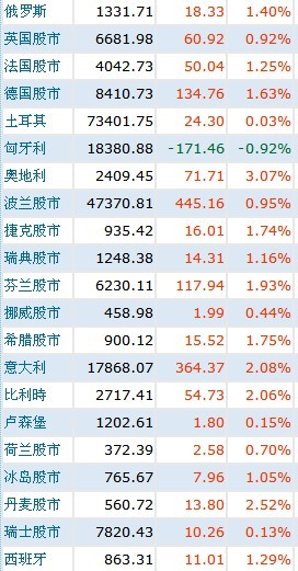 道指上涨128.48点,收于15,628.02点,涨幅为0.83%;纳指上涨49.37点,收于3,675.74点,涨幅为1.36%;标准普尔上涨21.14点,收于1,706.87点,涨幅为1.25%。