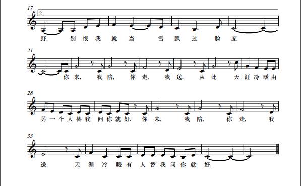 曼曼还特别细心告诉我说,是F调的,不过怕别人看五线谱辛苦,所以写成了C调的谱。