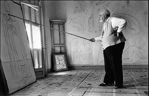 比方说野兽派的马蒂斯作为一位狂热的艺术家,他的创作环境却格外整洁与干净。工作室铺满报纸,一尘不染。他甚至使用超长杆画笔绘制大型草图,避免弄脏环境(这种方法同时解决了不能整体观察大型绘画构图的问题)。