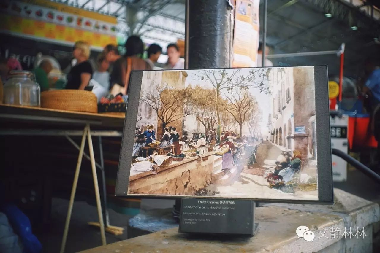 市场旁边还有一张画家Emile Charles Dameron的油画,与上世纪初画作里的景象相较,有着一样的货品,一样的树木,弥漫着一样的纷香,只是今天的市集多了顶棚,顾客穿上了现代的服装而已。
