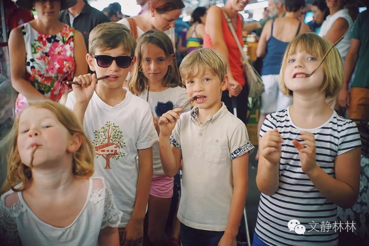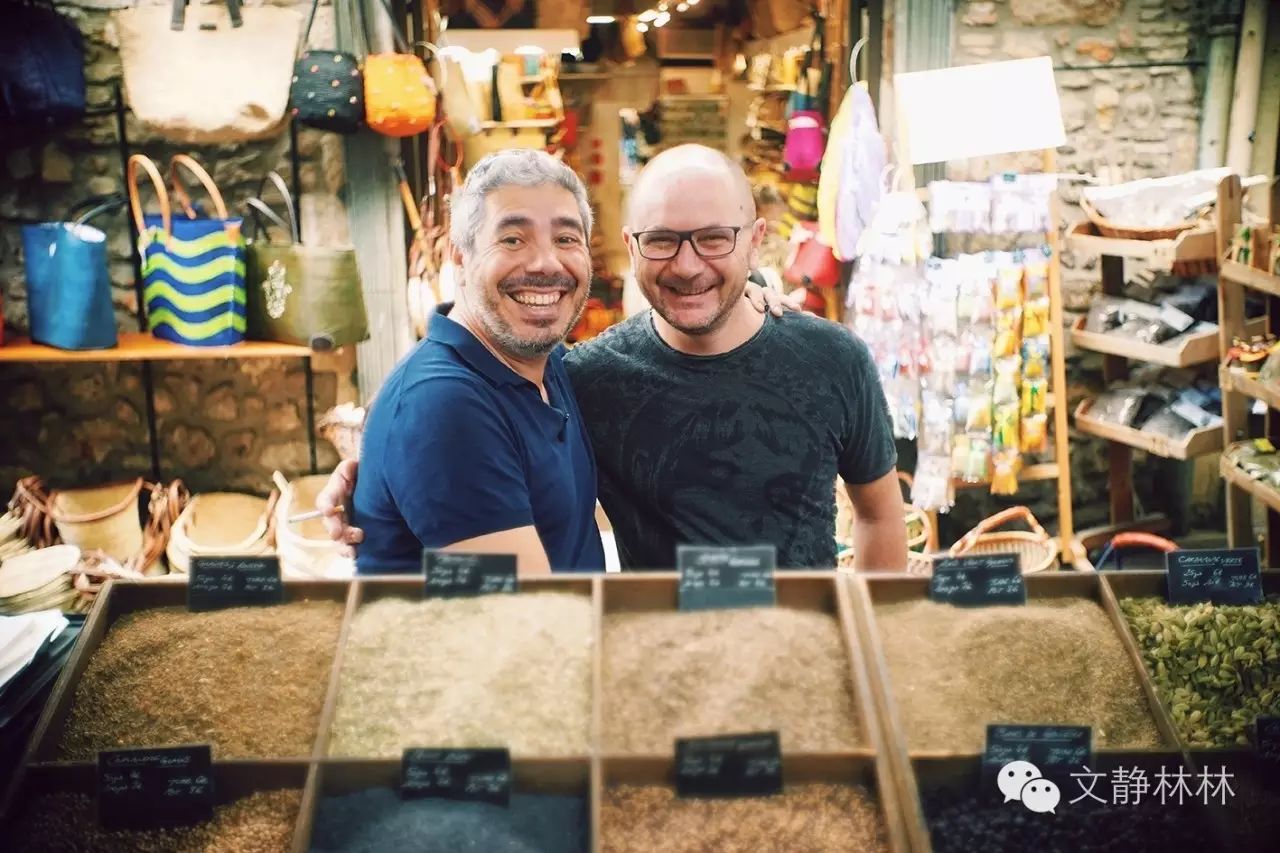 在市场中,我们可以找到这里最新鲜特有的瓜果蔬菜,美味的香肠和奶酪,还有地方特产如调味料、蜂蜜、熏衣草、橄榄油、鲜花……热情的摊主乐于让您试尝闻名遐迩的普罗旺斯调料,这个调料用橄榄油、刺山柑、凤尾鱼和松子等合制而成,好看的食品目不应暇,引得大家各种好奇。