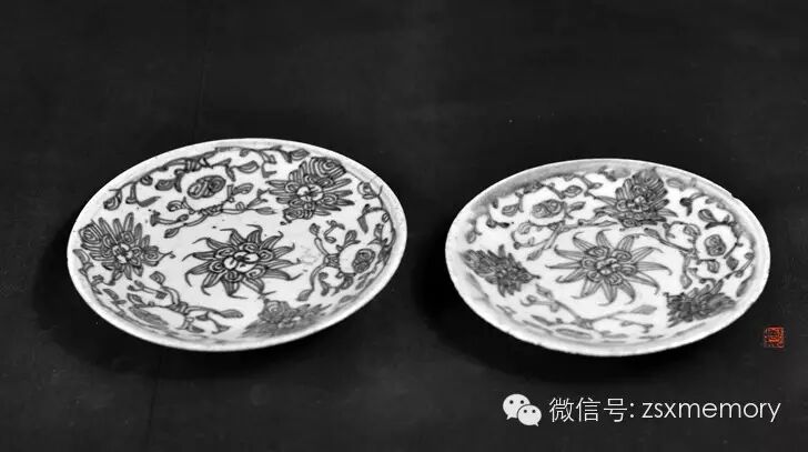 图--4:又从阿裕伯老屋的废墟里找回的青花缠枝莲纹瓷盘、瓷碗。
