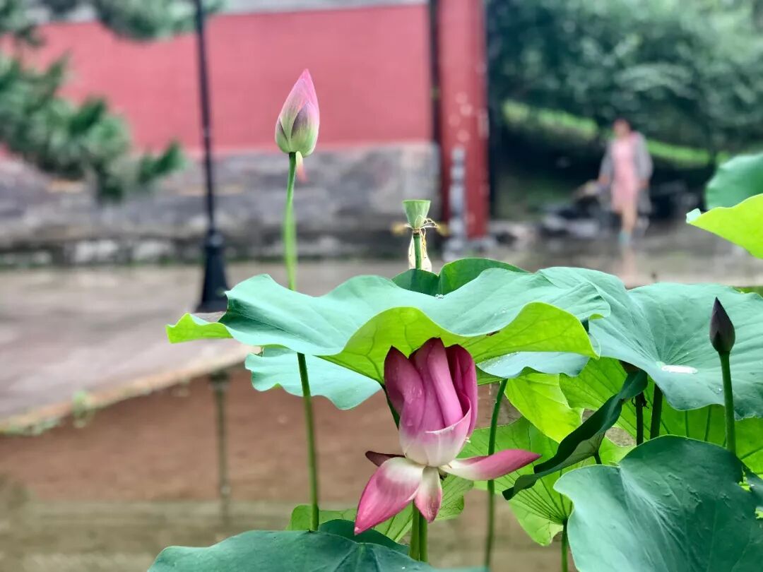 一朵朵含苞欲放的荷花,悄悄泛出水面,丝毫不畏惧暴风雨的来临。