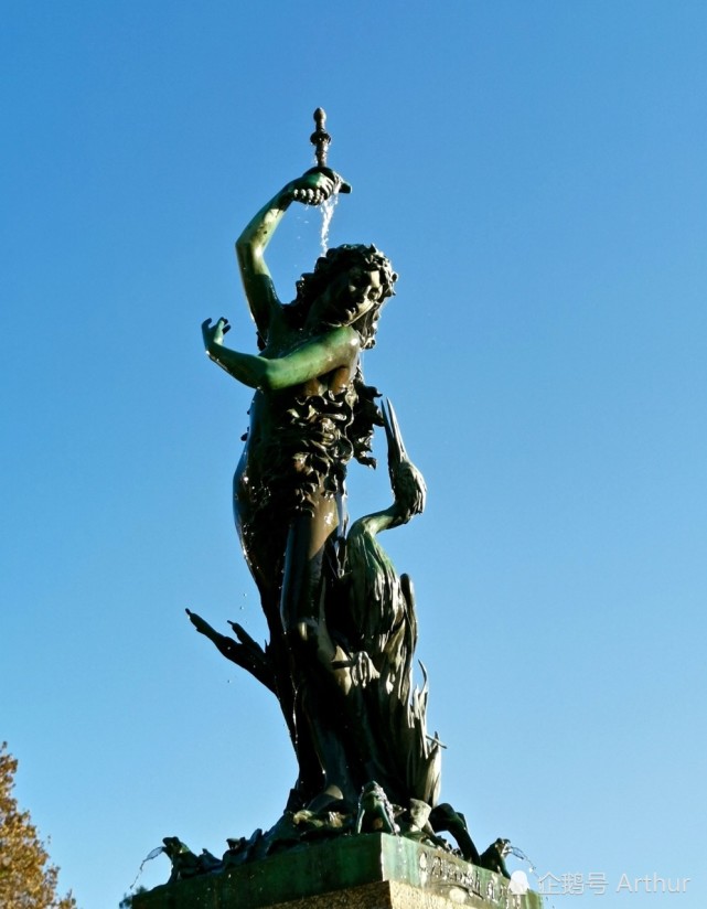 这是公园东门附近一个喷泉雕塑,美丽的卷发女神。