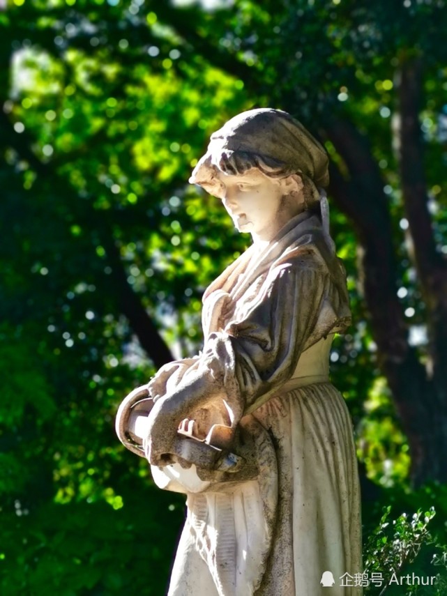 在植物园西门的台阶两侧有四尊雕塑,分别是《春》《夏》《秋》《冬》,这是雕塑《春》。