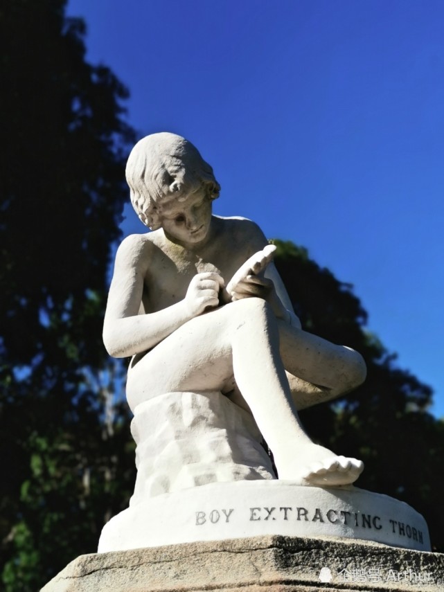 拔脚刺的少年。一直以为是抠脚少年,直到看到雕塑基座上的文字,才知道原来少年的脚上扎了一个刺。哈哈,很生活化的雕塑,好看。