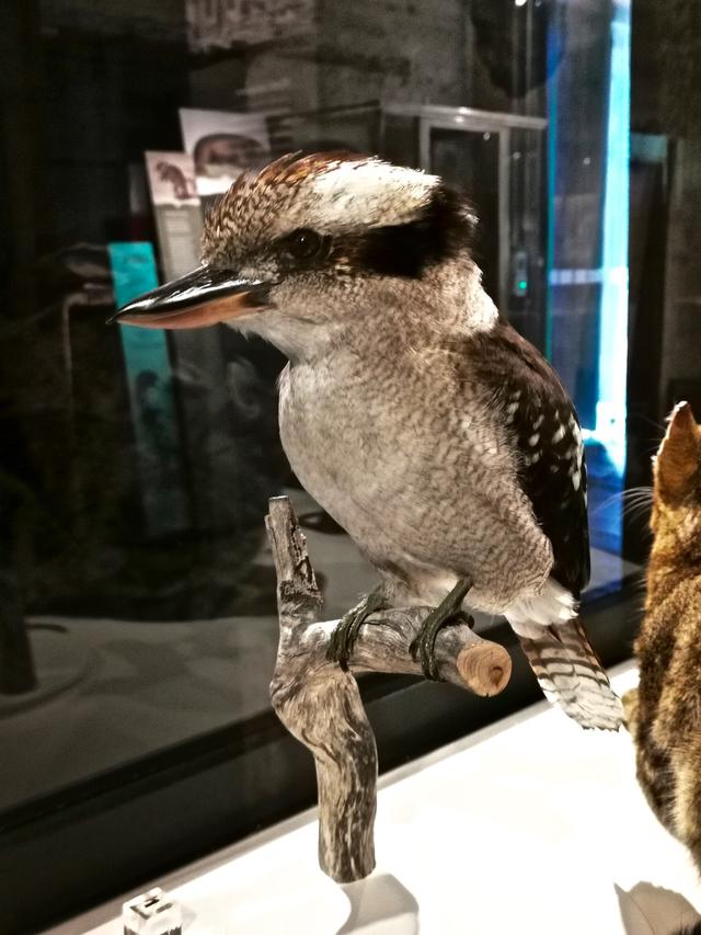 这是有名的笑翠鸟,是翠鸟里体型最大的,我在悉尼的皇家植物园见过活的,听过它们的叫声,真就是哈哈大笑的声音,非常有趣。