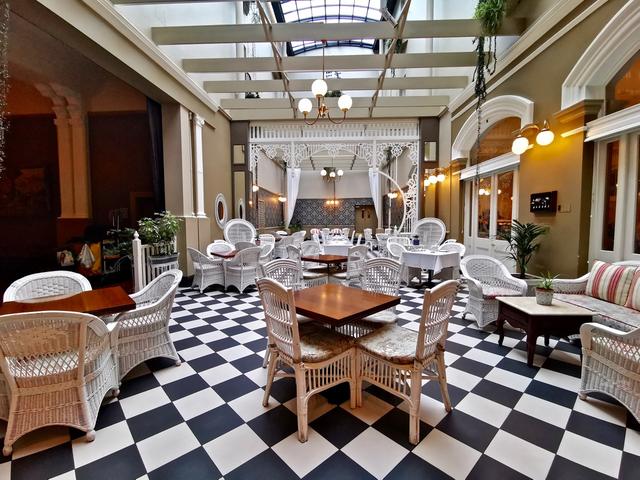 酒店中庭式餐厅和酒吧,餐食算不上多丰富,但味道不错。至于酒店的价格,我们住了四晚,每晚大约1000人民币左右,觉得挺值的。