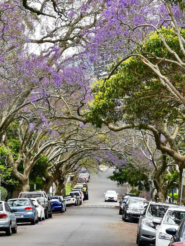 跨大桥过悉尼湾来到了北悉尼,沿途街区里有不少好看的蓝花楹树。