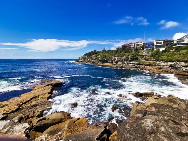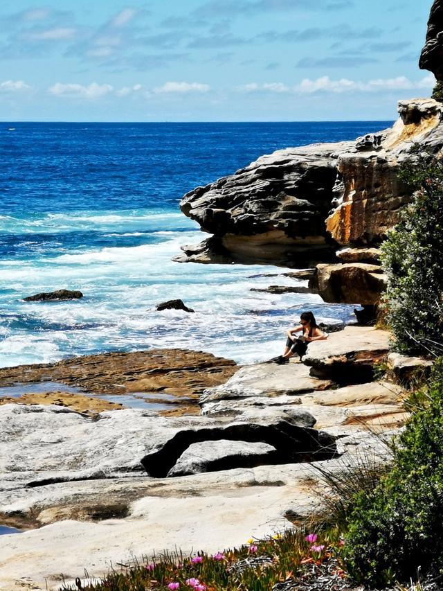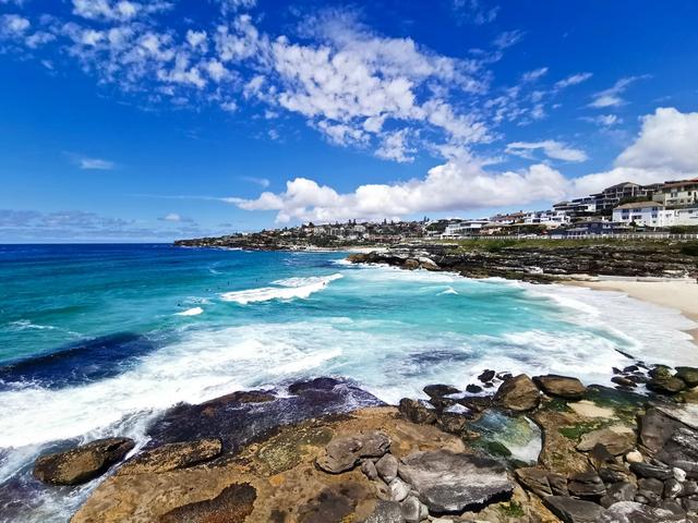 再次来到邦迪海滩,天空是云卷云舒,大海是浪花连连。大海和天空是不同的蓝,浪花和云朵却有着共同的白,只要望上一眼便会令人震惊,那宽广豪迈的景色就会想起“荡气回肠”这四个字。这奔腾的大海,是我永远看不腻的地方。