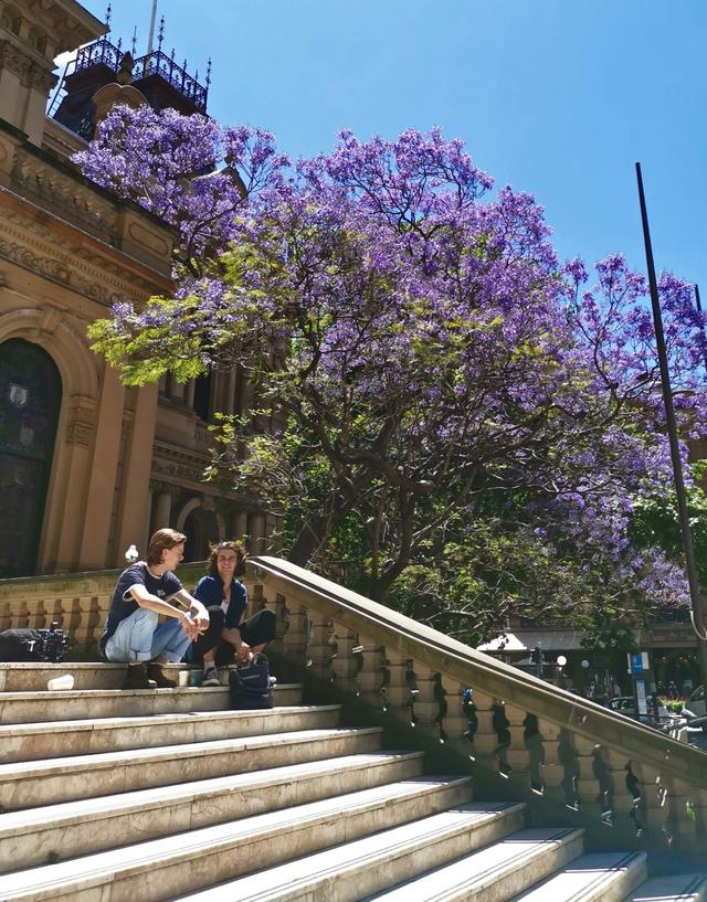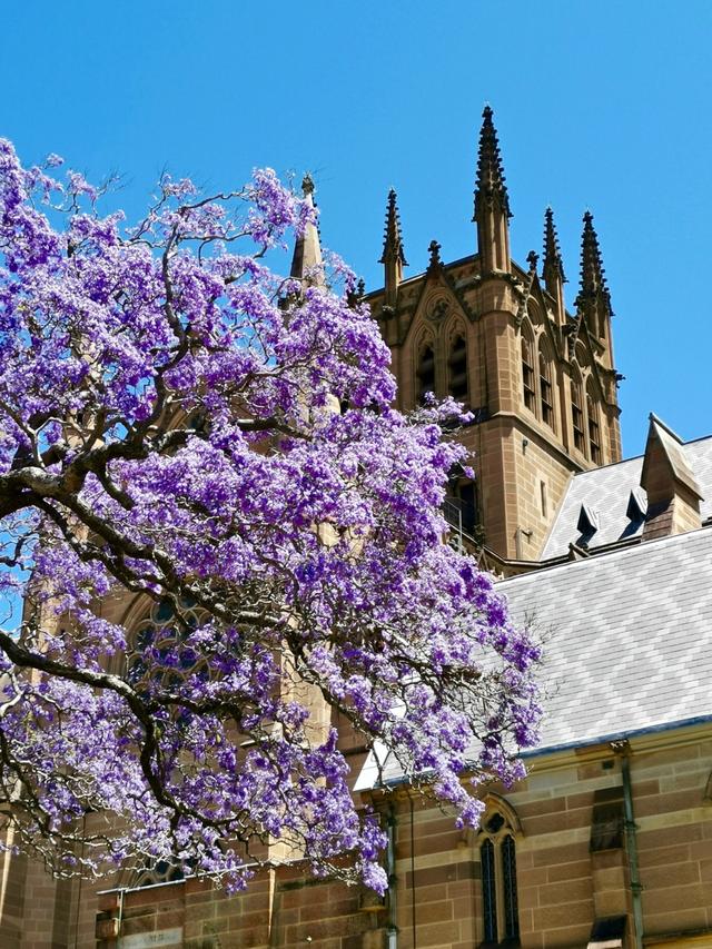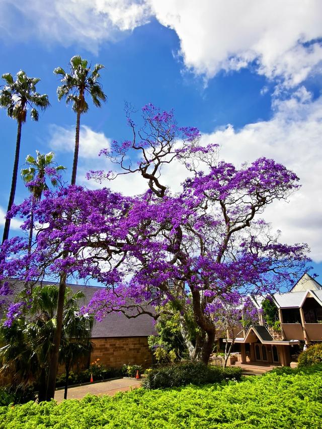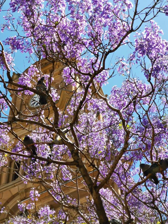 无论是环形码头还是市政厅,圣玛丽大教堂还是悉尼大学,亦或是皇家植物园或随便一条街道小区,到处都是盛开的紫色蓝花楹,悉尼真的变成了紫色。