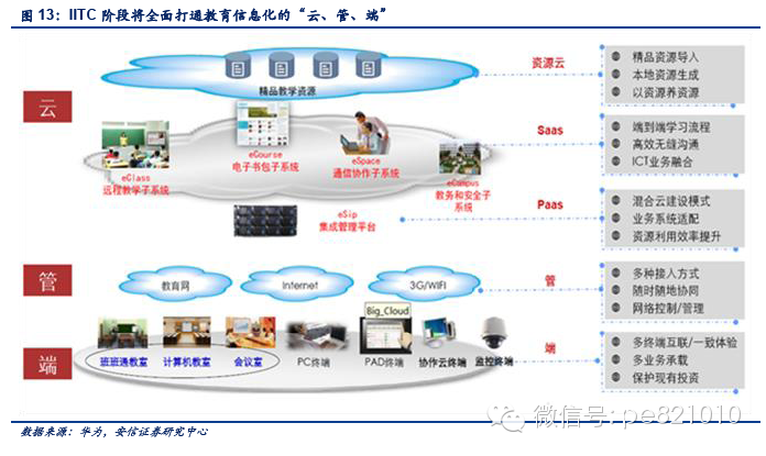 其次,打通“云”到“端”之间的大容量智能化信息管道,包括教育网的改造、带宽网络的升级、无线/3G/4G的普及,畅通的信息管道无疑将全面改善各地区、各校园间的互联互通,为共享教育资源、开放学习环境打下基础。