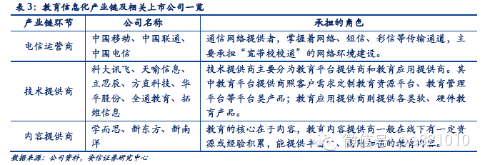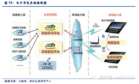 教育应用提供商。长期来看,随着网络基础设施的完善和教育平台的建立,各类教育应用将进入新的发展阶段,迎来发展的春天。我们认为,教育应用的内涵广阔,包括各类教育的软、硬件产品,既可以是教育内容的电子化,也可以是搭载内容和应用的定制终端,甚至可以是辅助性的教学应用工具,如电子书包、班班通系统、教学设计系统等,可拓展空间巨大。