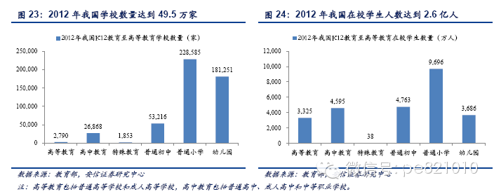 我国各级各类的教育机构数量众多,从学前教育至高等教育共计49.5万所学校,覆盖2.61