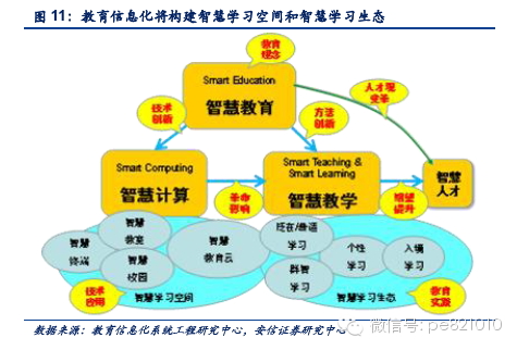 教育信息化是智慧城市的重要组成部分。教育作为民生的着力点,是智慧城市信息化建设中重要的一环。智慧城市已经成为各地方政府“十二五”时期的重要抓手,在全国范围内呈燎原之势。我们预计,中国城镇化未来10年建设的总投资将超过40万亿元,与智慧城市相关的投资有望达到2万亿元,教育信息化建设将直接受益于智慧城市的大规模建设。