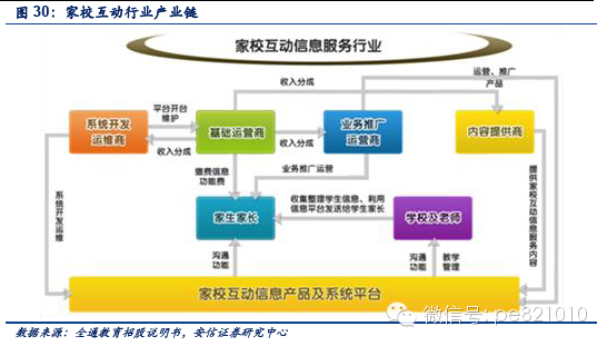 以家校互动产品为例,电信运营商通过与系统开发商合作分成的模式为学校和家长提供家校互动服务,运营商负责提供品牌支撑、基础设施投入、通信网络、收费结算等支持,典型的产品如中移动的“校讯通”、中国电信的“家校通”等。目前,运营商正在扩大教育产品的服务范围,尝试新的业务模式,这也为相关的系统开发商和技术提供商提供了机会。
