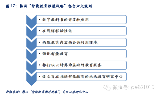 2011年,韩国颁布了“智能教育推进战略”,明确规划,从2012年起,韩国开始将小学国语,数学,英语等教科书上传到网上,并计划2014年在小学和初中、2015年在高中全面推广数字教科书。届时,师生可以随时随地下载教科书,并可以根据需求选择能够高效教学与学习的教科书。