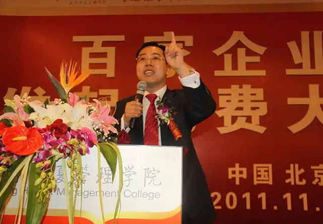 ▼姜岚昕老师向社会宣布把北京华夏管理学院办成中国首所免费大学