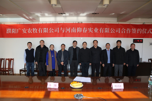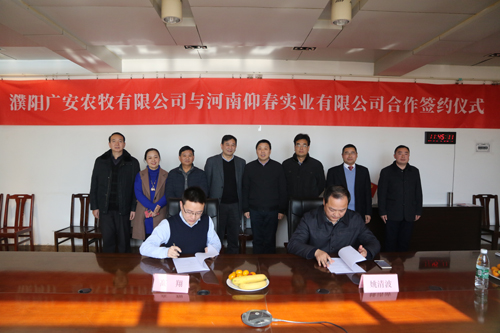 12月16日,濮阳广安农牧有限公司与河南仰春实业有限公司就合作合资南乐广兆猪业有限公司(以下简称“南乐广兆”)签订正式协议,双方将共同投资打造一个存栏7200头种猪的现代化原种猪场和种猪扩繁场。