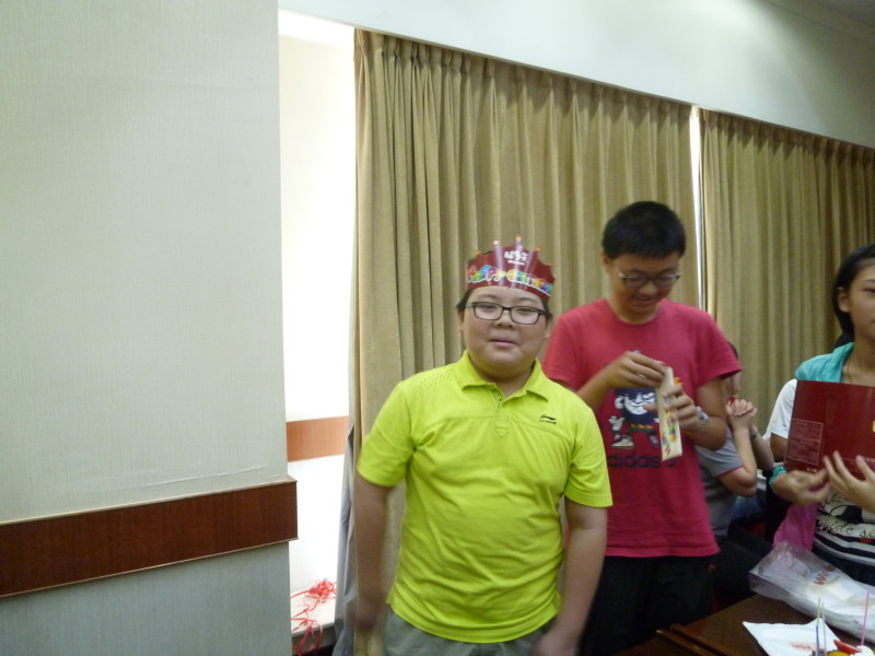 肖博友同学来自湖南长沙,新学期读六年级,是基地的一位老学员了,老师、同学们都亲切地称他“小朋友”。他长得敦实,圆圆的大脸庞、红红的嘴唇、高挑的眉梢,就像是化了妆一样,漂亮、可爱,让人看了以后就想“捏一下”。他很坚强、很独立,接受能力特别强。暑假前,妈妈把他带到基地来参加面授的模块课,几天后,妈妈回家,把他留在了基地。接下来两周的时间,都是他自己学着来打理自己的生活:自己洗衣服,买饭吃,每天早早起床从宾馆到基地来上课……