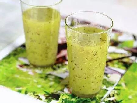 2. 将猕猴桃块、葡萄放入榨汁机,加凉开水适量,搅打成汁即可。