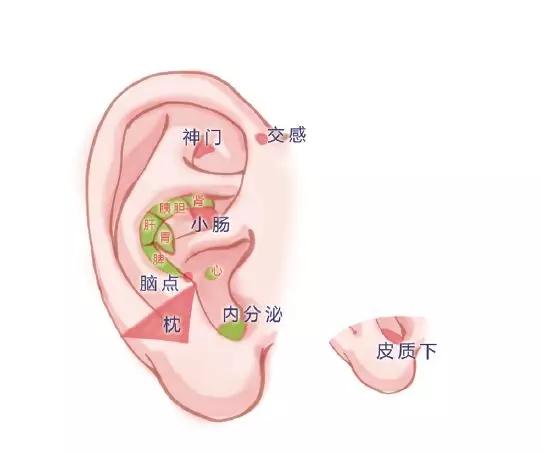 交感:在对耳轮下脚端与耳轮内侧交界处可调节神经,促进睡眠。