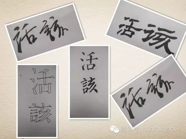 然后,丁毅,就是那个向阳花公益伞“碎片”的设计者,为了弥补失去了把“活该”精神发扬光大的机会,当机整了几个字体出来。