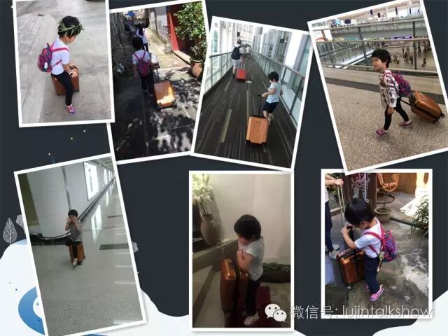 这样的娘西西不是第一次见识,很小的时候妈妈就跟她说,我是抱不动你的,出去你必须自己走路。不仅仅要自己走路,四岁半以后出门还被要求自己拉箱子,自己背包。佳珍原来买过一个拉杆箱自己用的,女儿五周岁以后她发现,这箱子西西用刚好,所以出门就让西西拖着,机场拿行李,传送带拿上拿下也是西西自己搞定。