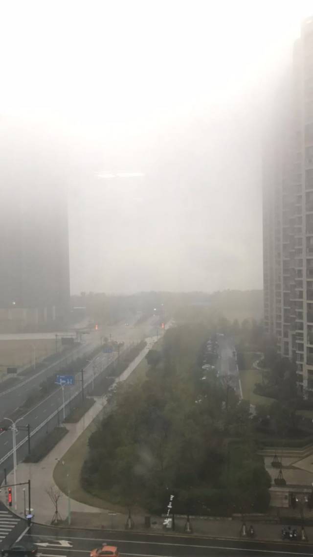 昨天下午,我在办公室顺手拍了一张窗外的照片,刚好,一个朋友也拍了他们办公室外面的