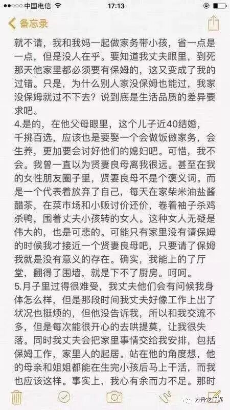 对湘潭这位女子的家庭生活没深入了解过,也只能根据她遗书的叙述。遗书的角度只说明她情绪的角度,并不一定是最公平的客观事实,但还是可以看出一点。