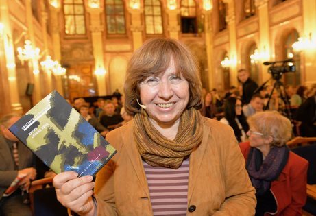 2015年10月8日,瑞典学院将2015年度诺贝尔文学奖颁给了阿列克谢耶维奇,以表彰她对这个时代苦难与勇气的写作。