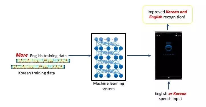 这张图我们显示了机器学习的简化流程图。机器学习的一个应用方向是赋予机器理解人类语言的能力。我们搜集了大量音频数据及对应的文本数据作为训练数据,输入到机器学习算法中。该算法将“学习”训练数据中的模式,并从中创建称为“模型“的新算法,最终将该算法投入语音作为输入的系统中实用,并输出对应的语音翻译。