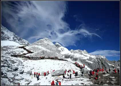 3、玉龙雪山。包车费、进山费、古城维护费、门票、缆车费、骑马费,费用忒多了点,而且体力不好的朋友登山有些艰难,雪山风景独特,不过能否欣赏到要看天时地利人和。