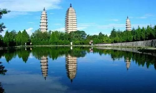 3、三塔。是我国现存古代佛塔中造型最精美的建筑之一,它位于大理县城西北约三里处的苍山第一峰即小岭峰下。