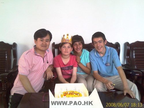6月10日是小古丽的14岁生日,我在征得校方同意后,提前和义工屈婧来到学校,在学校的接见室给小古丽过了生日,参加人:沙尼娅古丽,侨坎,地瓦那夏,屈婧和我,我们分别用汉语,英语,维吾尔语,塔吉克语四种语言为小古丽唱了生日歌(当然是三个孩子会唱4种语言,真羡慕!)