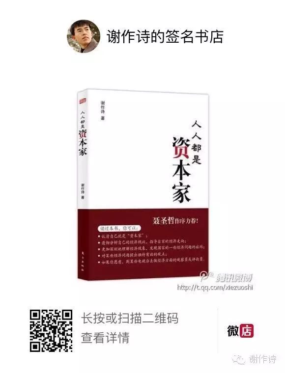【亲,呆哥和一帮经济学者建了微信公众号“经济学家告诉你”:宣传私产保护、权利意识和法治,传播正确的经济学知识和市场经济理念。写文章不容易,如果粉丝太少,作者就没有写作的动力,公众号就办不下去,办下去也没有意义,故恳请您帮我们转发以增加粉丝。可直接搜索“经济学家告诉你”加关注,也可扫图中二维码加关注。当然,如果您喜欢我个人的更加个性化、私密化的东西,请关注我的私人公众号“谢作诗”!拜托!】