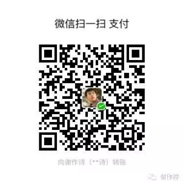 欢迎光顾谢作诗的签名书店(http://weidian.com/?userid=257447452&wfr=c),里面有众多大虾的亲笔签名书、字、雕刻等。也可以点击 阅读原文 进入微店。当然,您也可以直接扫或者长按下面二维码给谢作诗打赏。