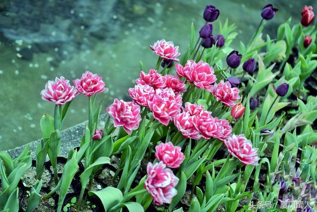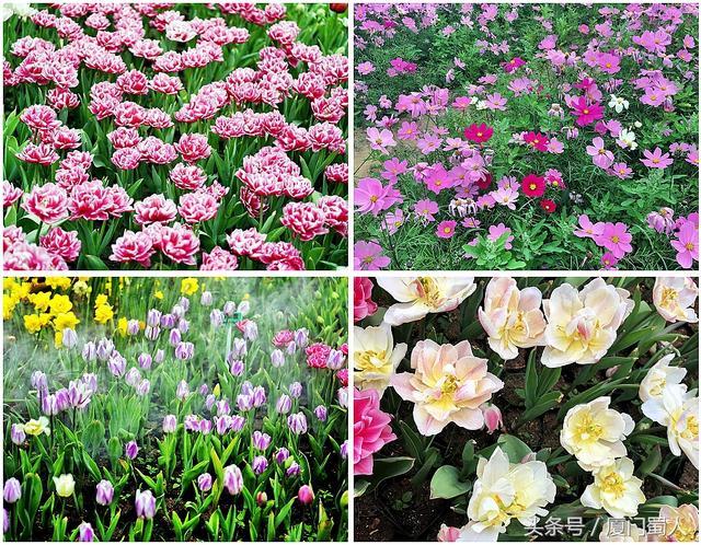 今年的郁金香花展设在日本园,共有9万盆21个品种,其中还夹杂很多风信花、水仙花。