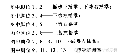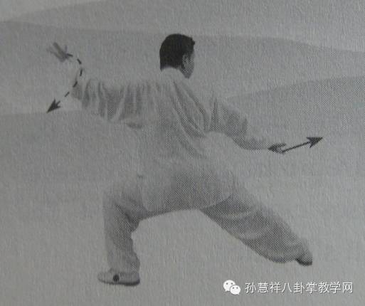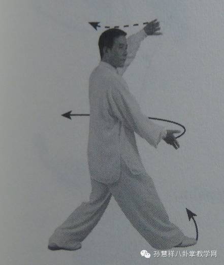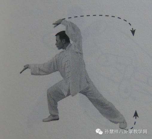 要点:此掌要连贯.转体速度要快,摆扣步要清楚。