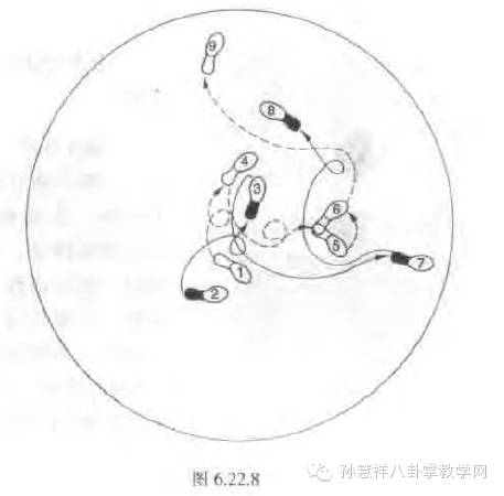 上动不停,右脚进步扣过步.向左转体.两臂和掌型不变。,目视左手.随转体而周旋(图6.24.7)。