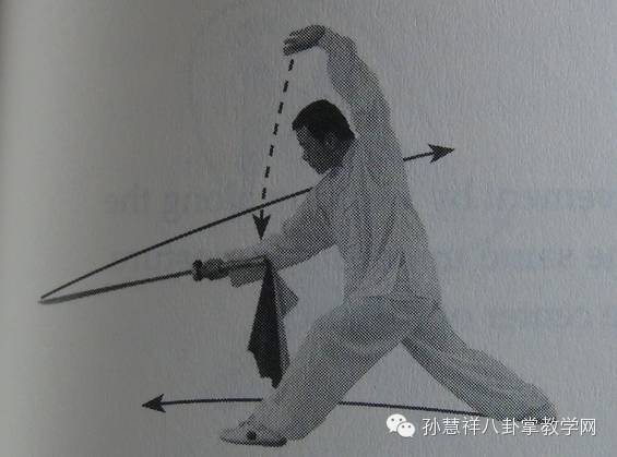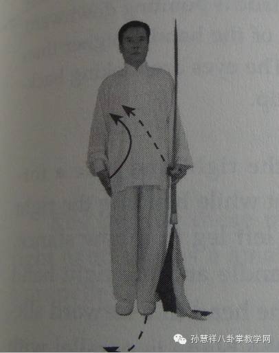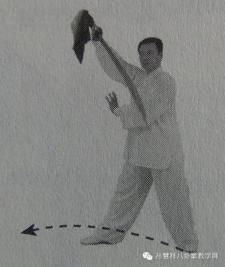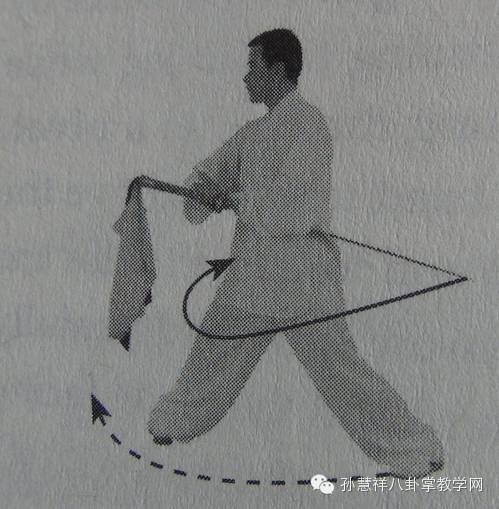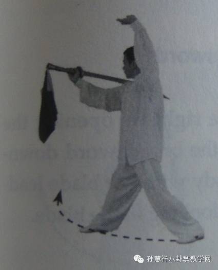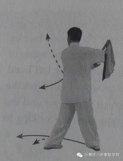 (2)为了保证收势的位里回到原起势的位置.用行桩方法归回起势处.再进行下一动作。