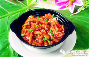 4.收干汁后,用水淀粉勾芡,最后加入鸡精。