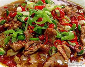 4、加入葱姜、香菜,一块儿爆锅,把跳好的汁浇在肉片,出锅即可。