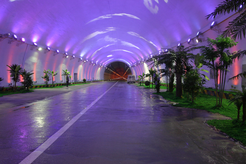 其中为缓解驾驶员视觉疲劳,保证行车安全,特别设置了目前世界上高速公路隧道最先进的特殊灯光带,值得一去。
