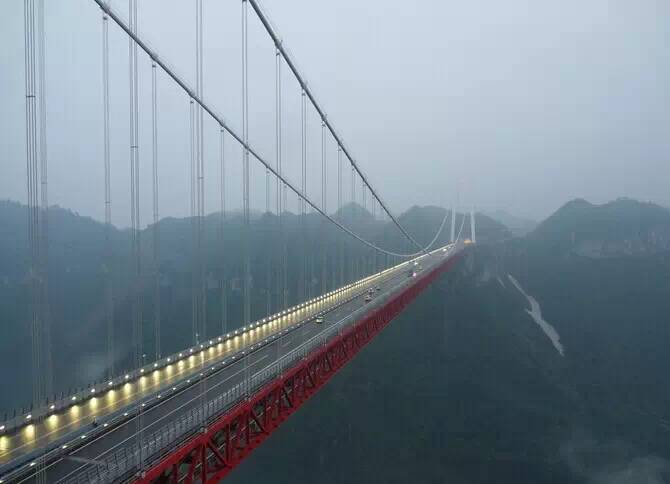 矮寨特大悬索桥,位于湖南湘西矮寨镇境内。矮寨悬索桥,距吉首市区约20公里,跨越矮寨镇附近的山谷,德夯河流经谷底,桥面设计标高与地面高差达330米左右,全长1073.65m,悬索桥的主跨为1176m。该桥跨越矮寨大峡谷,主跨居世界第三、亚洲第一。http://www.wxtup.com/img/717q.jpg
