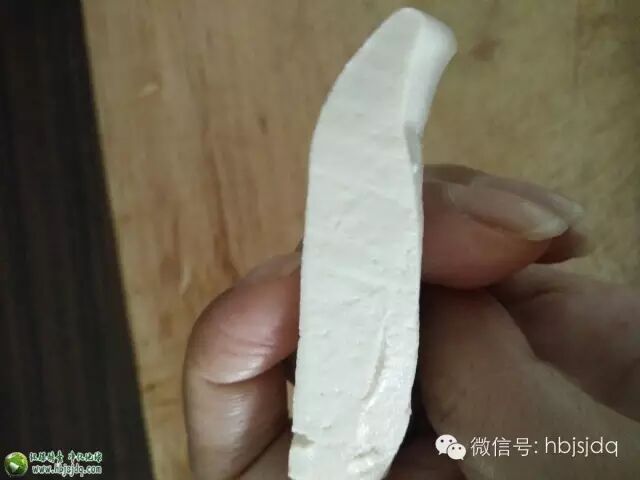一个小时后,打开棉布,取出豆腐,此时豆腐成型了。(注意:如若不想做出来的豆腐太老,就不要用力挤压,做了三次对比